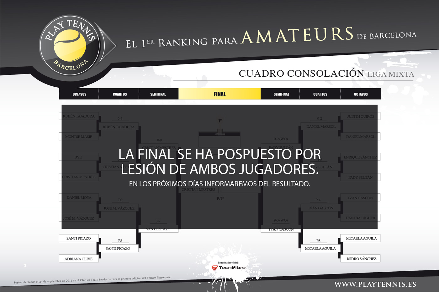 IMPORTANTE: Las personas que han tenido un “BYE” en primera ronda siguen en el cuadro principal. Si caen eliminadas en esa ronda podrán ir a jugar el cuadro de consolación. Así jugarán como mínimo los 2 partidos que hemos garantizado.